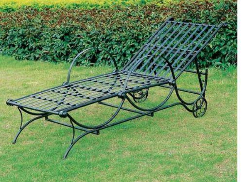 OnSale MANDALAY IRON PATIO or PORCH CHAISE LOUNGE in BLACK with a CHARCOAL GRAY MARBLED FINISH